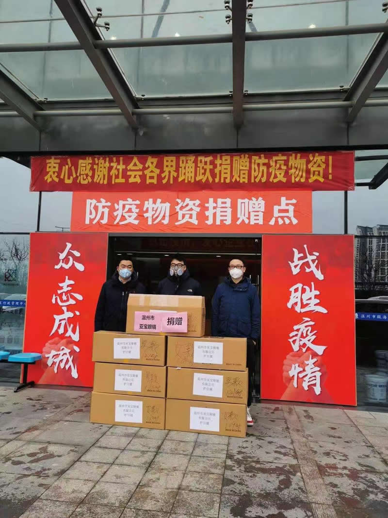 2020年2月22日上午9時30分,在甌海區(qū)委區(qū)政府組織領(lǐng)導(dǎo)下,在溫州(甌海)眼鏡小鎮(zhèn),亞寶眼鏡與行業(yè)伙伴企業(yè)共同捐贈一批護(hù)目鏡馳援武漢,溫漢攜手,同心共濟(jì)!希望這批護(hù)目鏡,能表達(dá)我們對抗疫一線醫(yī)務(wù)人員的敬意和支持。